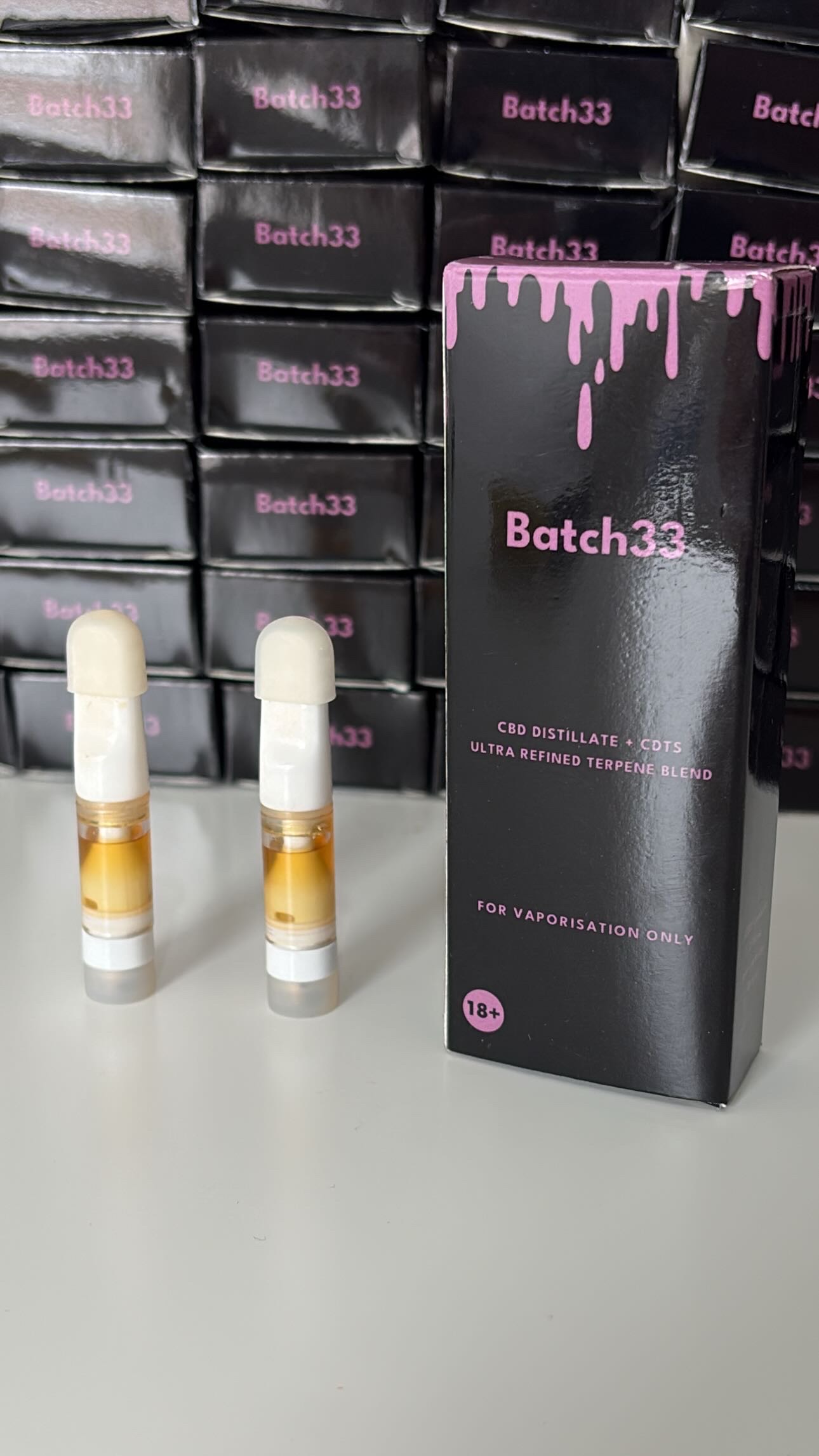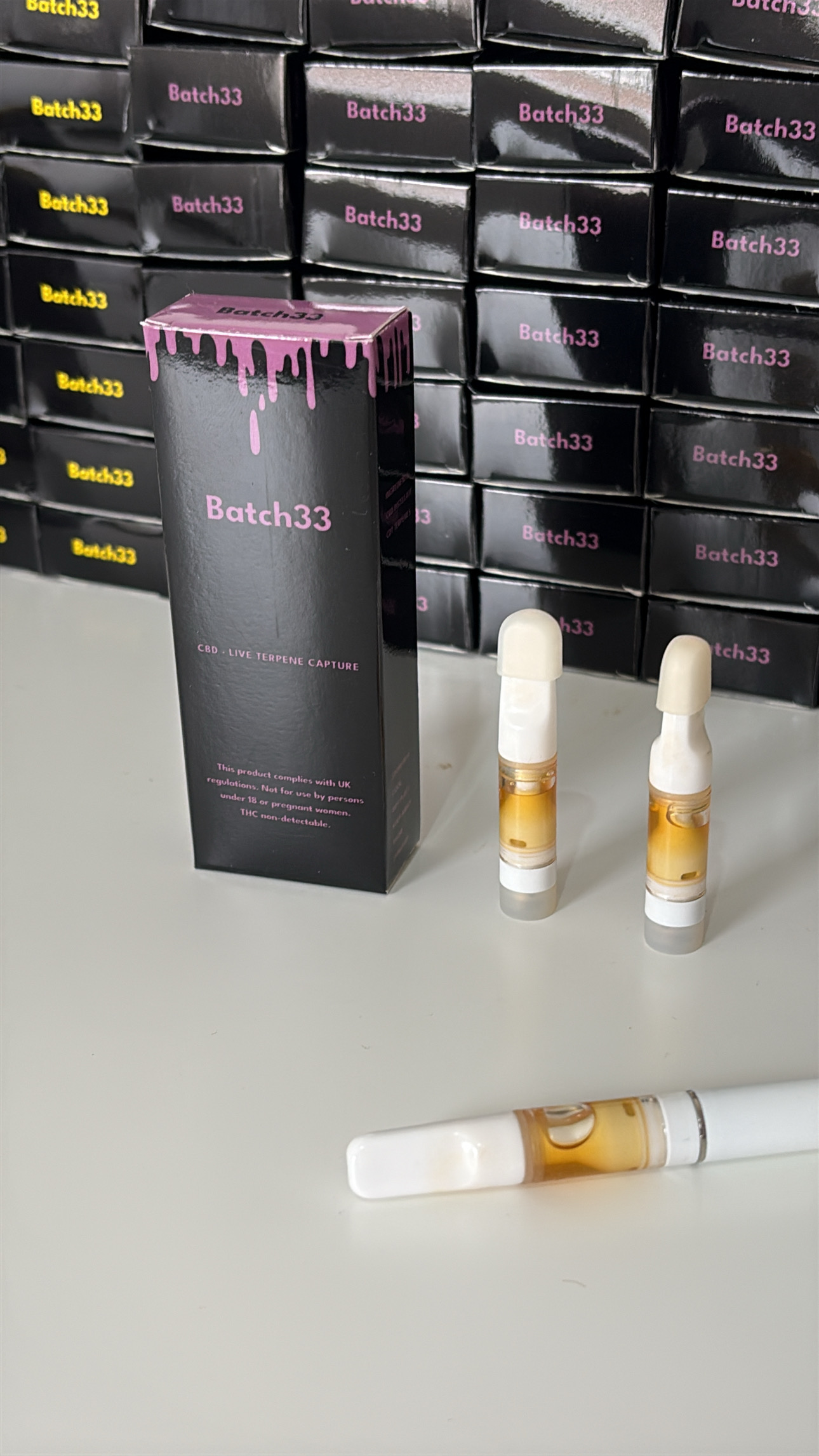 Experience the refined, strain led extract of Batch33. This 0.5ml cartridge features our signature Yellow terpene profile, carefully crafted for a premium CBD experience.
