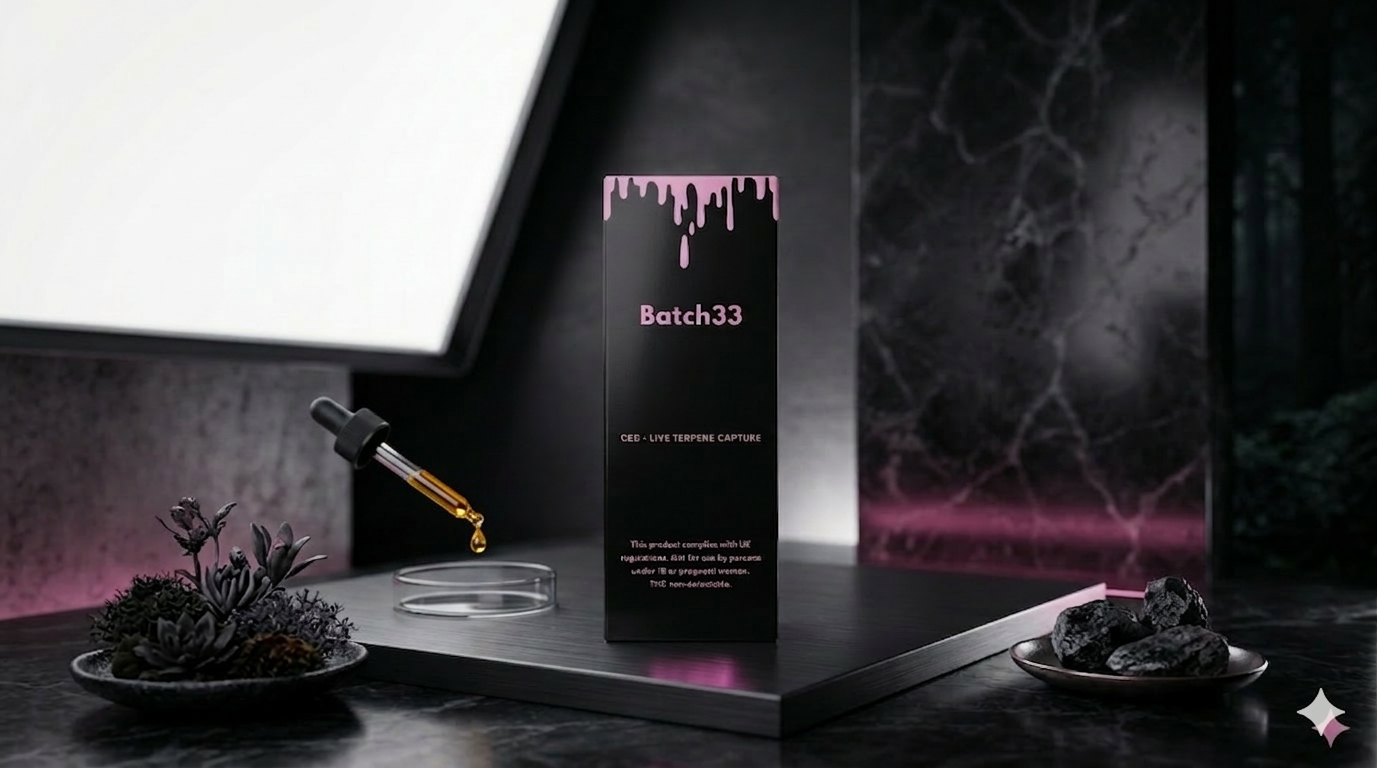 Batch33 is a minimalist, high end CBD brand designed for clarity, control, and a premium extract experience. The site and product presentation reflect a clean, dark themed aesthetic with subtle color accents.